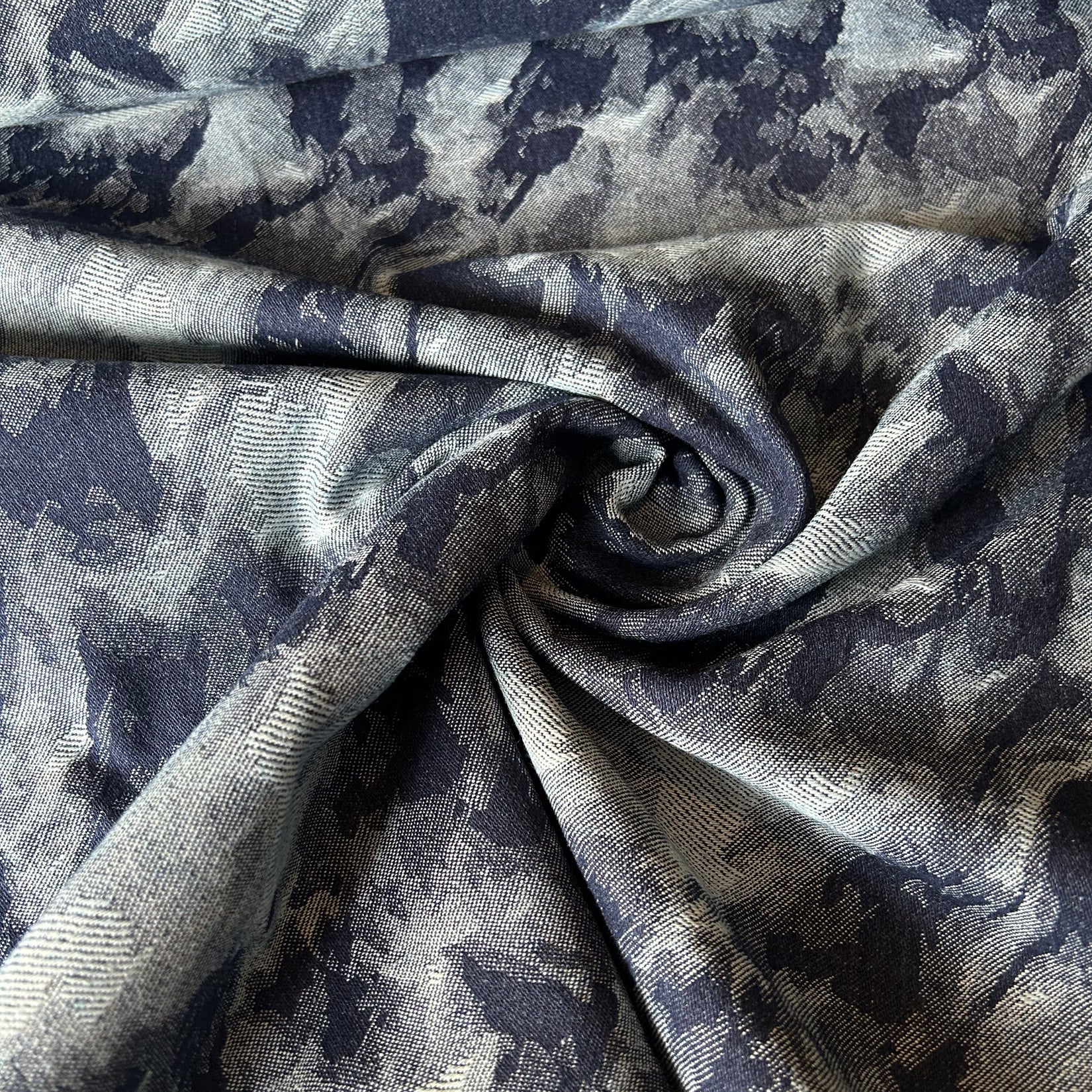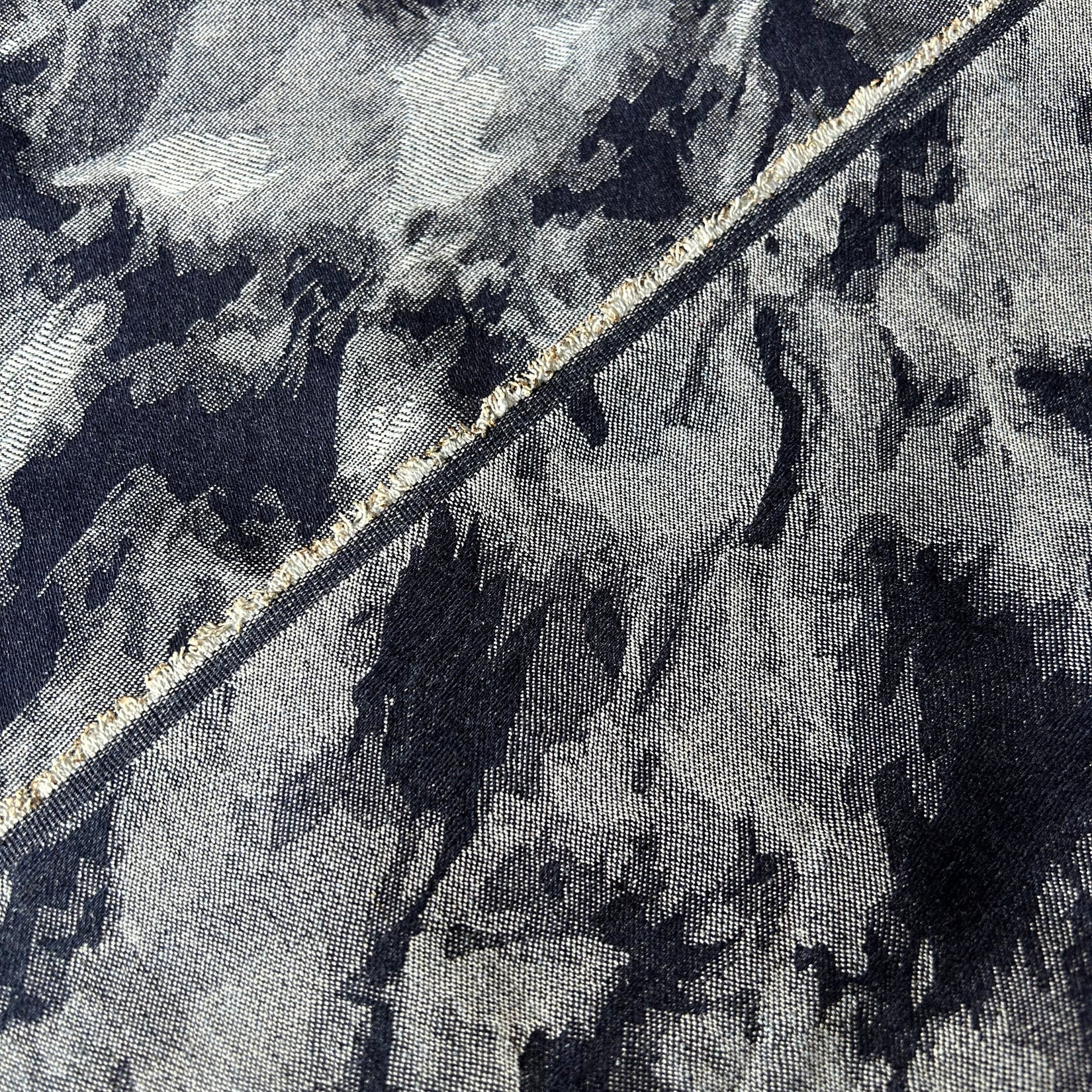 A modern twist on classic denim, this washed denim jacquard combines the durability of denim with the artistry of a woven pattern. The jacquard weave adds subtle texture and dimension, while the washed finish softens the fabric and gives it that easy, broken-in feel straight away.