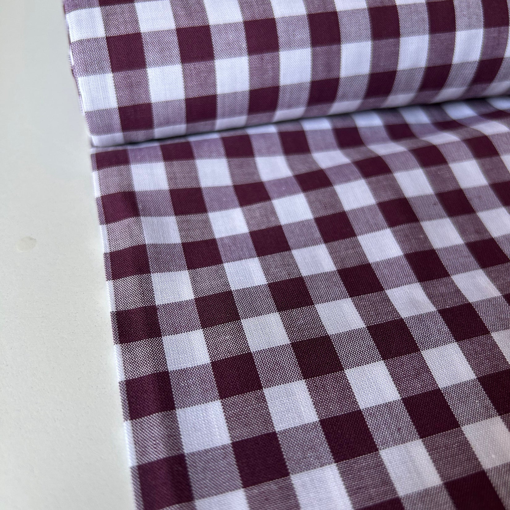 Burgundy Yarn Dyed 100% Cotton Gingham - 9mm checks